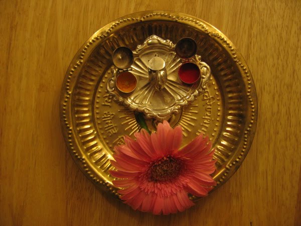 the puja thali looks so traditional…I have one plate like that but looking for the haldi kumkum container for a long time.